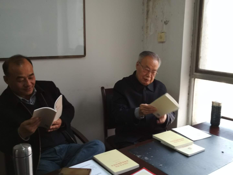 德高望重的赵馥洁教授和张波教授正在学习交流中。