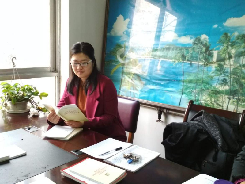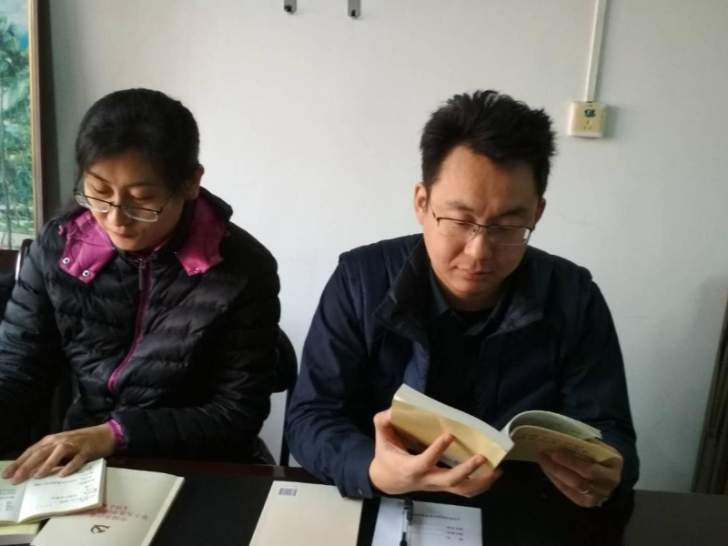 支部书记郭明俊教授正在为支部成员解读十九大报告精神。
