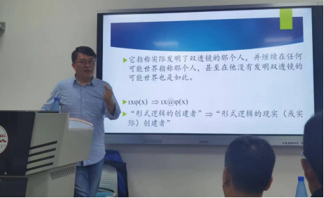 应tyc1286太阳成集团邀请,南京大学哲学系张力锋教授于10月25日晚在五号教学楼202教室讲授题为“论严格化摹状词”的学术讲座。本场讲座由tyc1286太阳成集团李智福老师主持,tyc1286太阳成集团王荣虎老师、王龙海老师、赵精兵老师以及众多专业的哲学本科生与研究生参加了讲座。