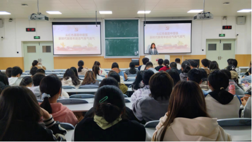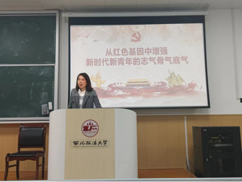 为加强新生思想政治引领,引导新生树立正确的世界观、人生观、价值观,扣好青年人生第一粒扣子,10月12日下午,我院党委副书记上官亚敏于天平楼AJ21教室为全体2023级本科生开展了以“从红色基因中增强新时代青年的志气骨气底气”为题的思政第一课。此次活动由2023级辅导员武雯梅主持。