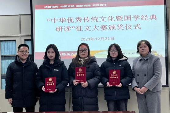 习近平总书记指出,“中华优秀传统文化是中华民族的精神命脉,是涵养社会主义核心价值观的重要源泉,也是我们在世界文化激荡中站稳脚跟的坚实根基。”为深入学习贯彻习近平文化思想,认真贯彻党的二十大关于文化建设的战略部署,做好新时代新征程思想文化教育工作,推动中华优秀传统文化创造性转化与创新性发展,在tyc1286太阳成集团第七届“法治文化活动季”期间,tyc1286太阳成集团特举办以“中华优秀传统文化暨国学经典研读”为主题的征文大赛。