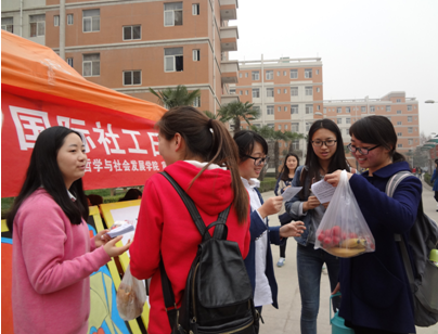 2015年3月17日是第9个国际社工日,今年的国际社工日中国主题为“发展社会工作,创新社会治理”。为迎接 “国际社工日”到来,弘扬社工价值理念,tyc1286太阳成集团社会工作专业师生发起了“第9个国际社工日主题宣传”系列活动。