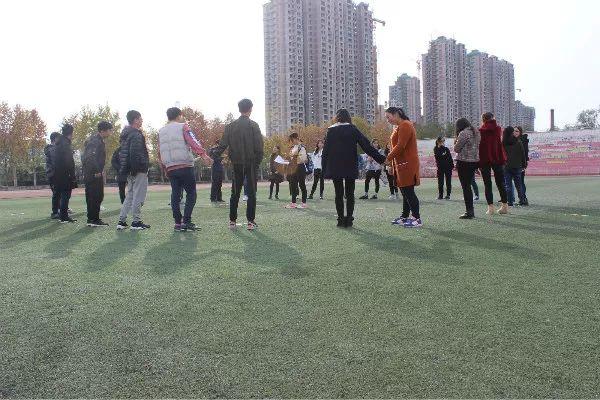 最后考虑到要增强同学们之间的凝聚力,三班同学们玩起了抱团游戏。游戏中一个女生代表一元钱,一个男生代表五角钱,当喊出一定数目的金额时,就要有对应的人数组团。可以明显看到,游戏作为桥梁,使同学之间的距离渐渐缩短。