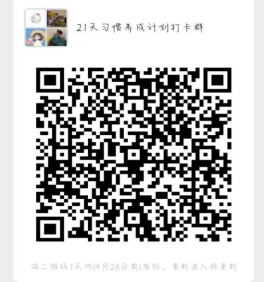 (2)微信扫描二维码加入“21习惯养成计划”的圈子进行每日进行打卡反馈(反馈截止时间为每日2300